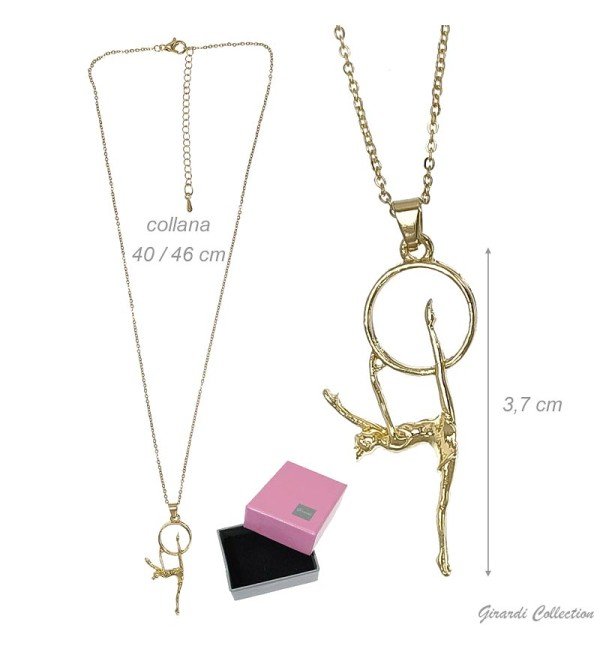 Collier en métal hypoallergénique doré avec pendentif gymnaste au cerceau